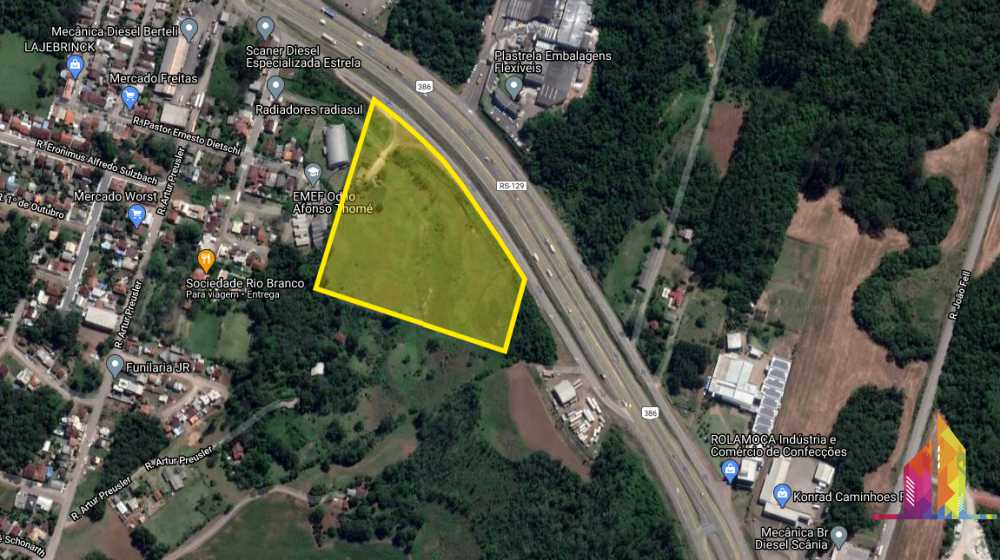 - Área com 4,4hectares localizada as margens da BR386 em Estrela.