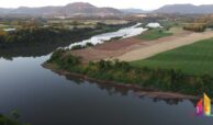 Faz divisa com o Rio Taquari onde mede 153m;